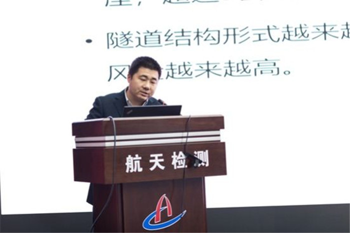 航天檢測研發(fā)總監(jiān)蘇建坤就公司作為交通運(yùn)輸部品質(zhì)工程攻關(guān)技術(shù)支撐單位隧道質(zhì)量安全隱患管控新技術(shù)以及院士工作站所取得的工作成果進(jìn)行了專題匯報